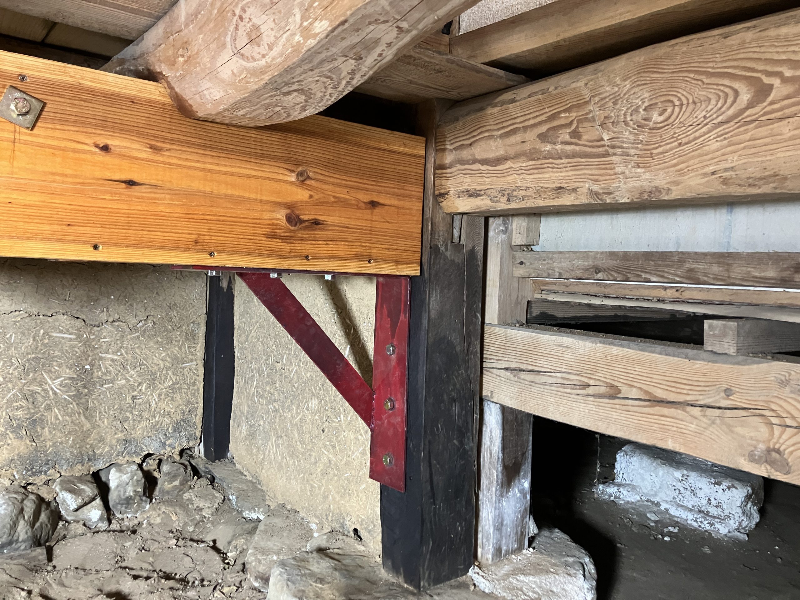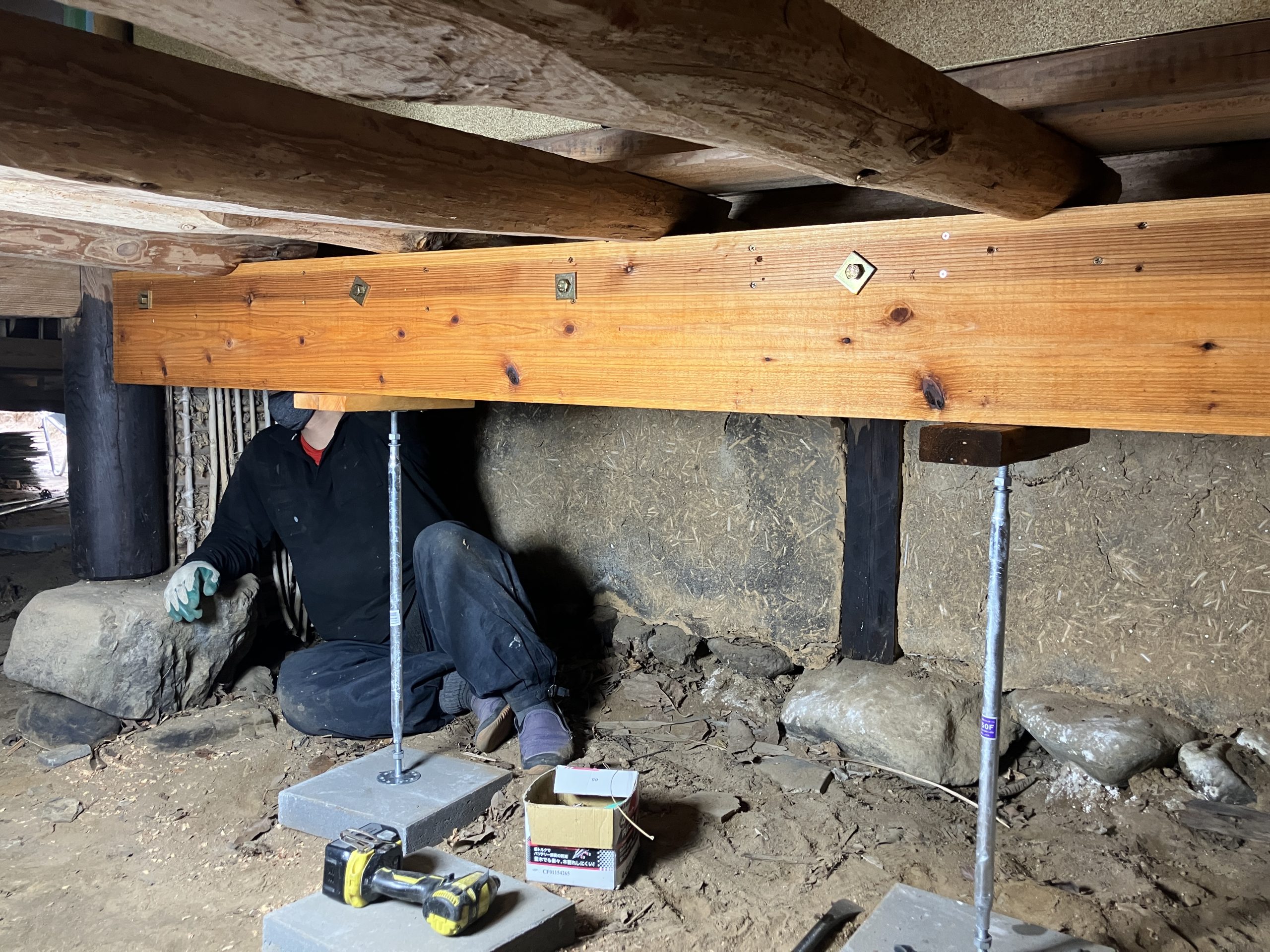 ・床下の骨組みの(大床)を鉄骨、板等で補強