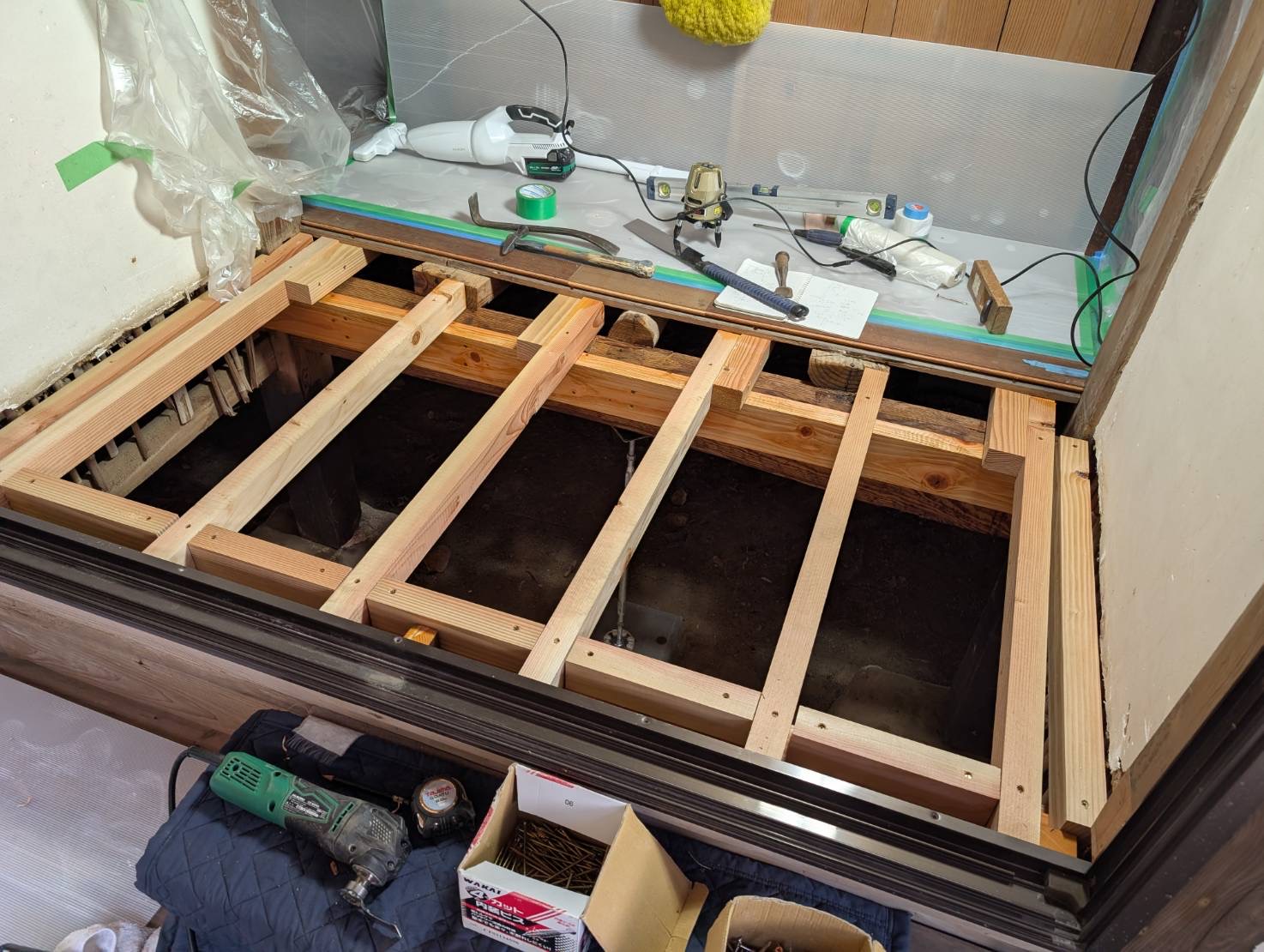 ・一部床を解体して、新しいフローリング張り