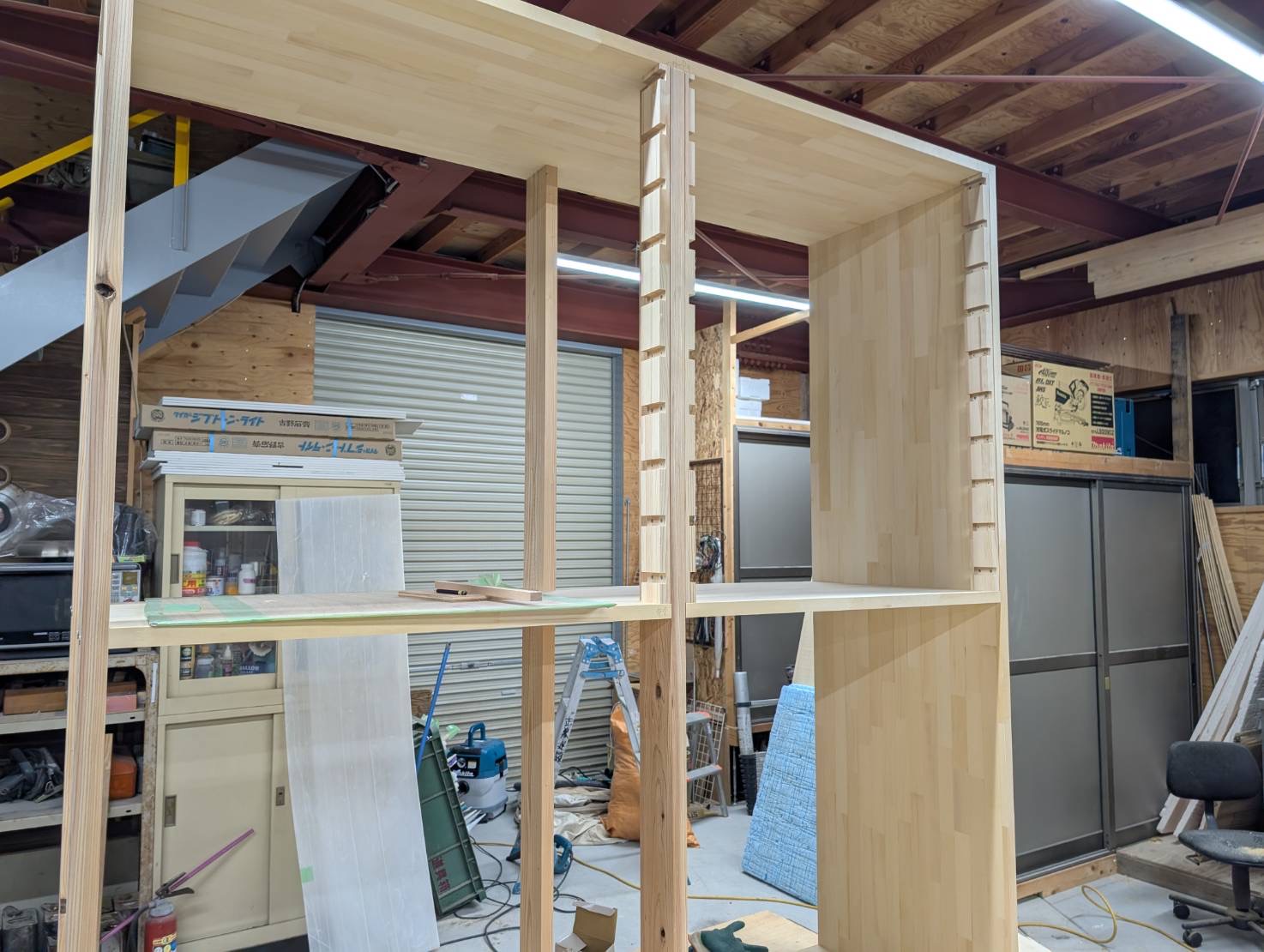 2階、6畳の洋間をウォークインクローゼット及び、収納スペースに改装工事です。